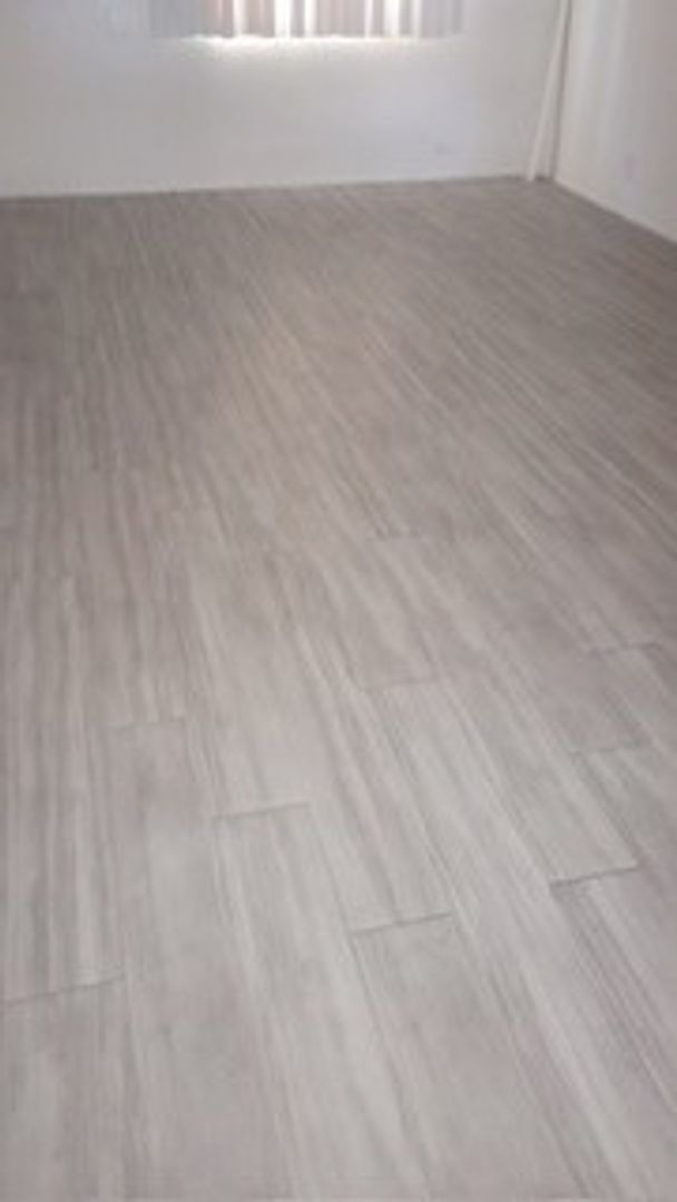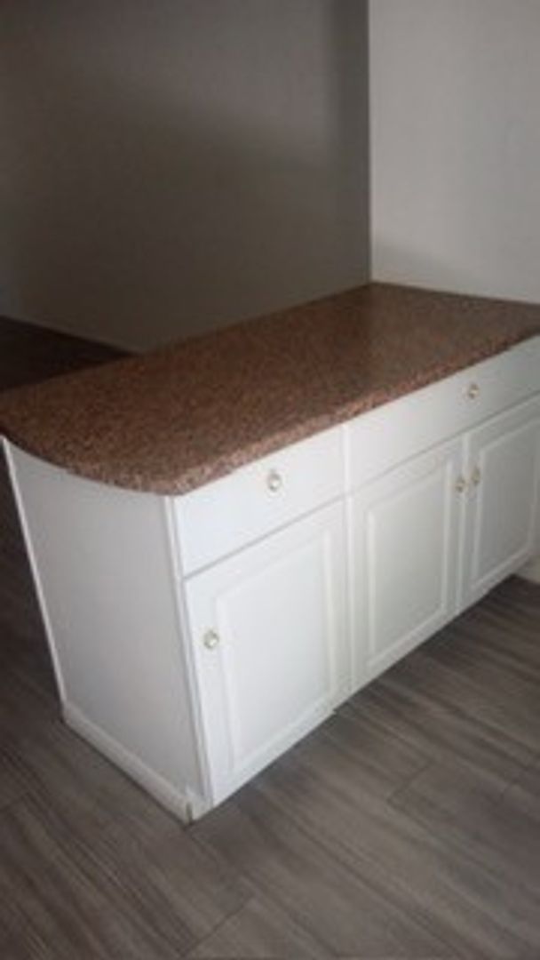Freshly updated kitchen with vinyl flooring throughout
